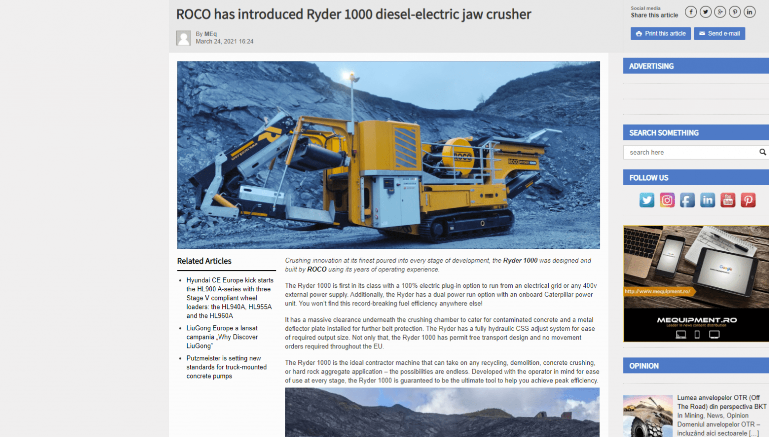 A huge thank you to M Equipment for their fantastic piece on our RYDER 1000 Diesel-Electric crusher in their trending news section this week ???? We are thrilled to see the Ryder 1000 featured! To check out the editorial piece put together, please click here!